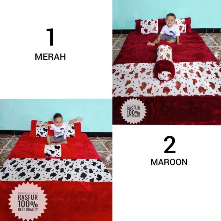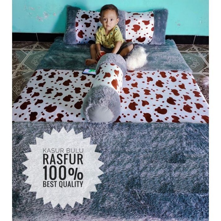 Karpet Kasur Bulu Rasfur Tebal 7cm Motif Set Bantal Ukuran 180x120x7cm Surpet Bulu Rasfur