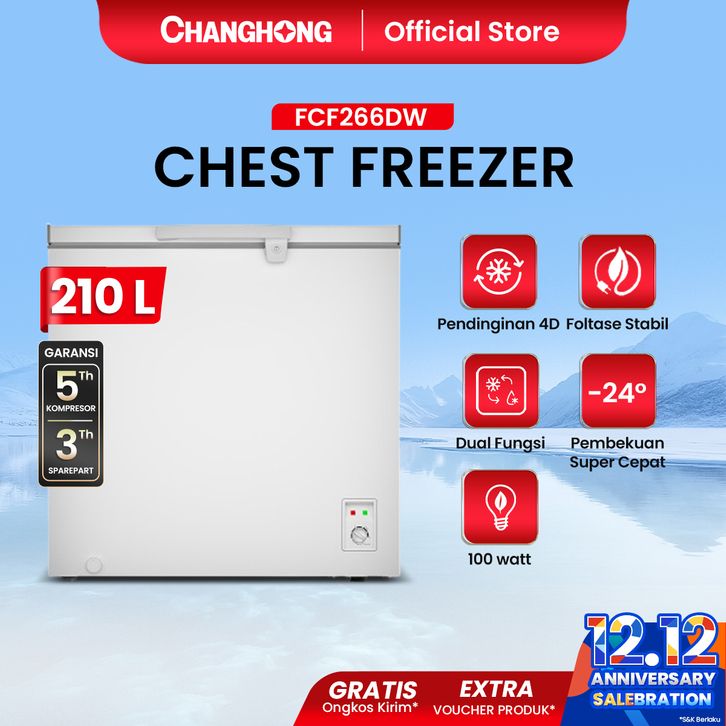 Changhong Chest Freezer Kapasitas 210 Liter - FCF266DW White