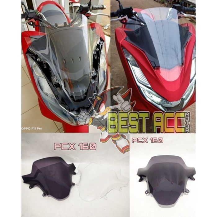 (GRATIS TANPA DP ✔) WINDSHIELD VISOR ALL NEW HONDA PCX 160 NEW 2021 MODEL OVAL 3MM MIKA WINDSHLIED CARBON SMOKE BENING