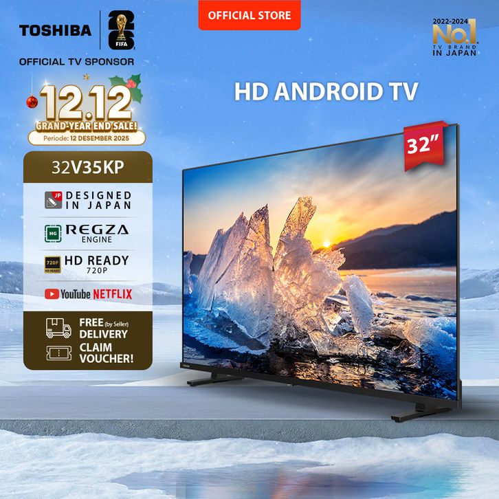 [FREE BRACKET] Toshiba TV 32" HD Android TV - Netflix Disney+ Youtube Dolby Audio Wifi Bluetooth HDMI Digital - 32V35KP