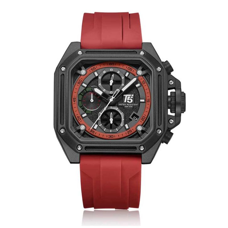 Jam Tangan Pria T5 H 4101 RED STRAP SILICONE Original Chronograph Bergaransi-Free tin box