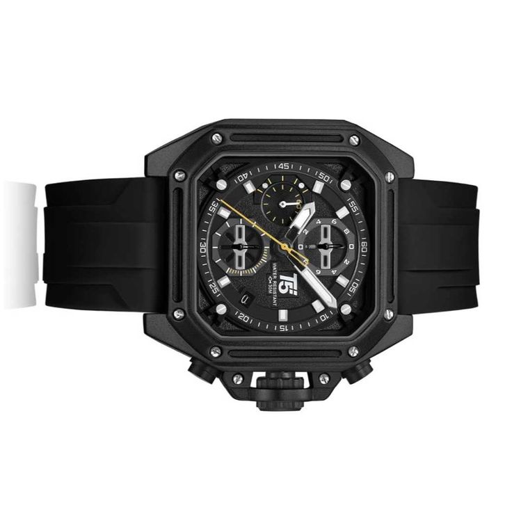 Jam Tangan Pria T5 H 4101 BLACK STRAP SILICONE Original Chronograph Bergaransi-Free tin box