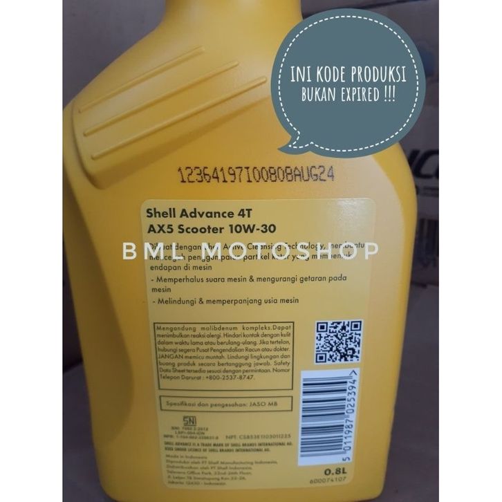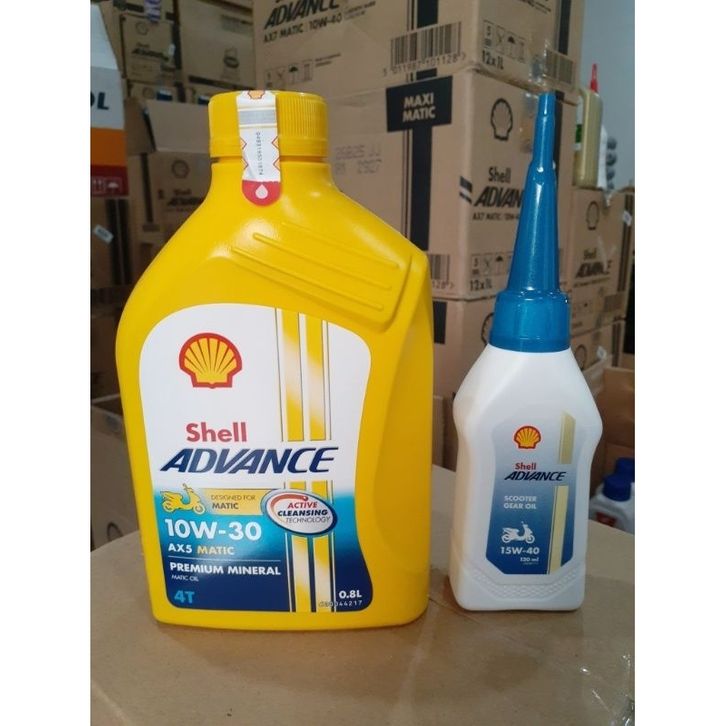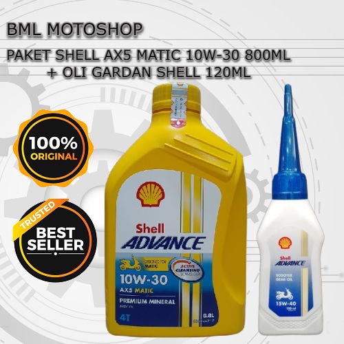 Paket Oli Shell Advance AX5 Matic 10W-30 800ml dan Oli Gardan Shell 120ml AX5 ScooterOrisinil 1Set