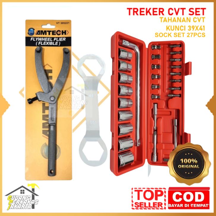 Paket hemat 3pcs Kunci Tracker CVT +Kunci Pulley 39x41+ kunci sock 27pcs