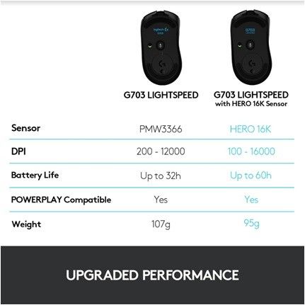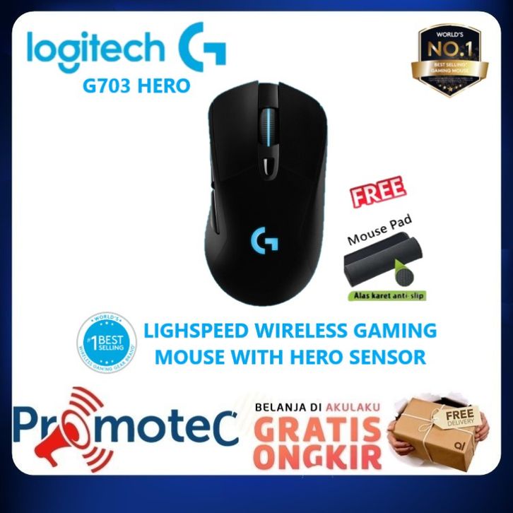 Logitech G703 HERO Lightspeed Mouse Gaming Wireless RGB HERO 25K DPI - FREE MOUSEPAD
