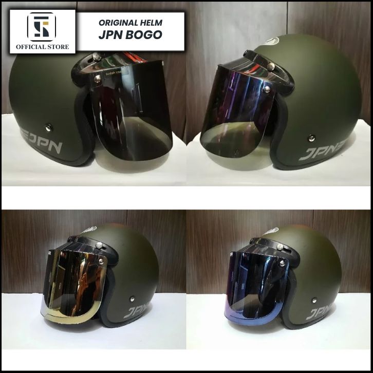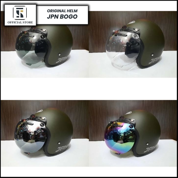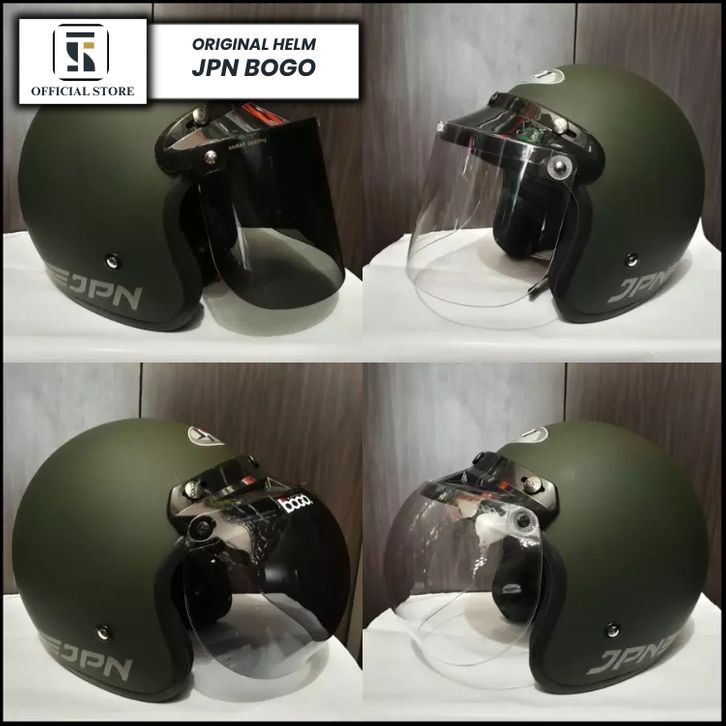 Helm Jpn Bogo Hijau Army Dop Kaca Datar Kaca Cembung ORIGINAL SNI