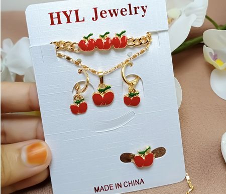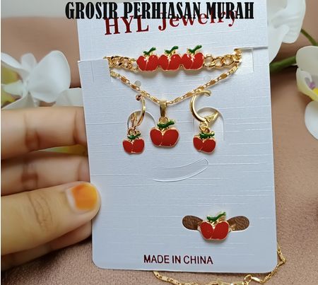 Set Anak Terbaru Motif Apell Lengkap Gelang Kalung Anting Dan Cincin Perhiasan Anak Kekinian Fashion