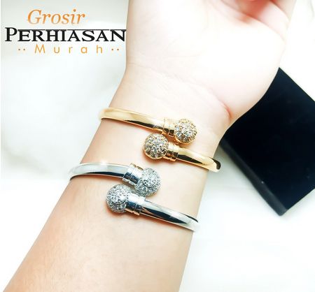 Gelang Bangle 24K Bola Setengah Ring Licin Perhiasan Wanita Grosir Perhiasan Murah