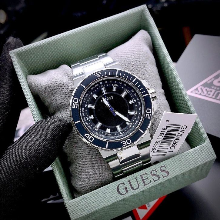 JAM TANGAN PRIA GUESS GW0426G1 SILVER BLACK STAINLESS STEEL- FREE ONGKIR - BEST SELLE