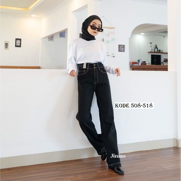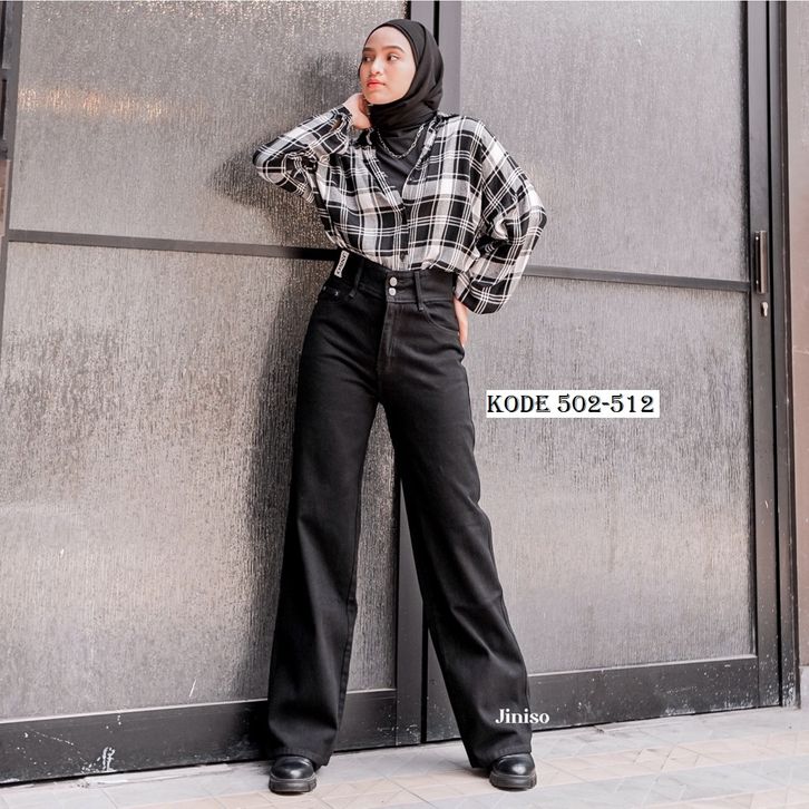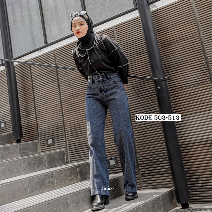 Jeans wanita - JINISO - Highwaist Baggy Jeans 504 - 514 GET LOW - Celana jeans wanita