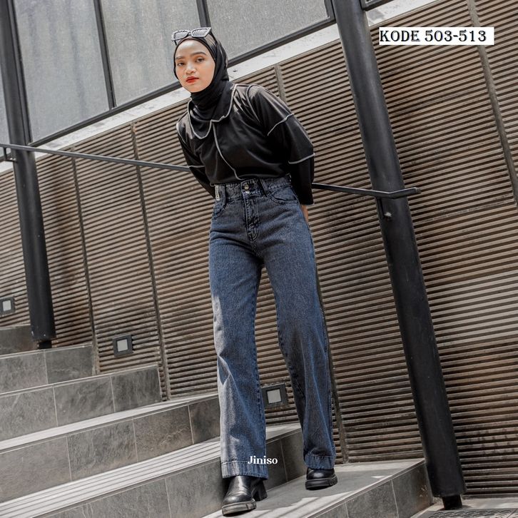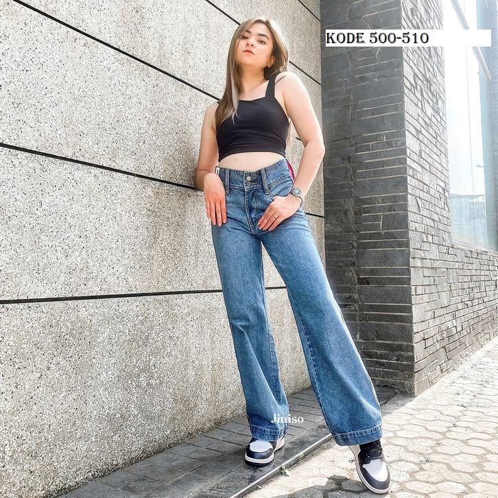 Jeans wanita - JINISO - Highwaist Baggy Jeans 500 - 510 GET LOW - Celana jeans wanita