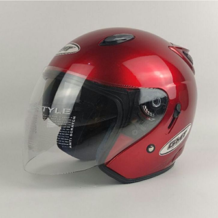 HELM MOTOR HELM HALF FACE DOUBLE VISOR COWOK CEWEK PRIA WANITA DEWASA/HELM SNI/ORIGINAL WARNA MARUN