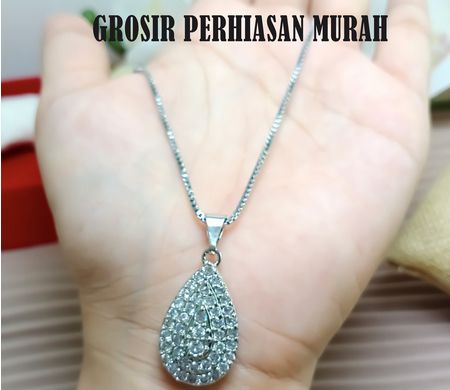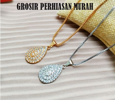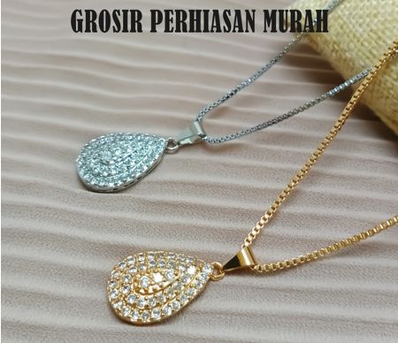 Kalung Premium Motif Itali Liontin Oval Full Permata Gold Dan Silver Perhiasan Kekinian