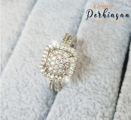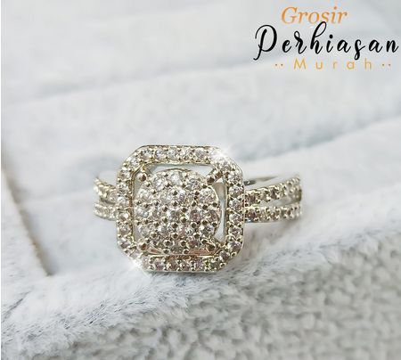 Cincin Xuping Silver Fashion Wanita Motif Permata Kotak Perhiasan