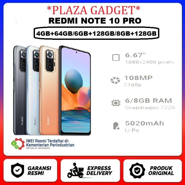 Xiaomi Redmi Note 10 Pro 6GB+64GB/6GB+128GB/8GB+128GB AMOLED 6.67" 108MP Quad Kamera Snapdragon 732G Baterai 5020mAh