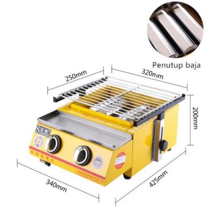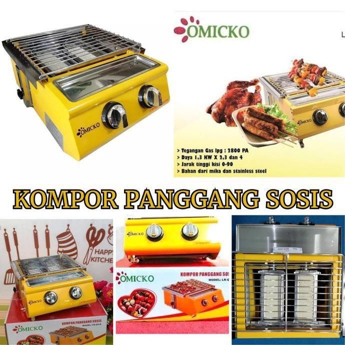 OMICKO Kompor Panggangan Sosis 2 Tungku/BBQ Grill Gas alat pemanggang daging stainles