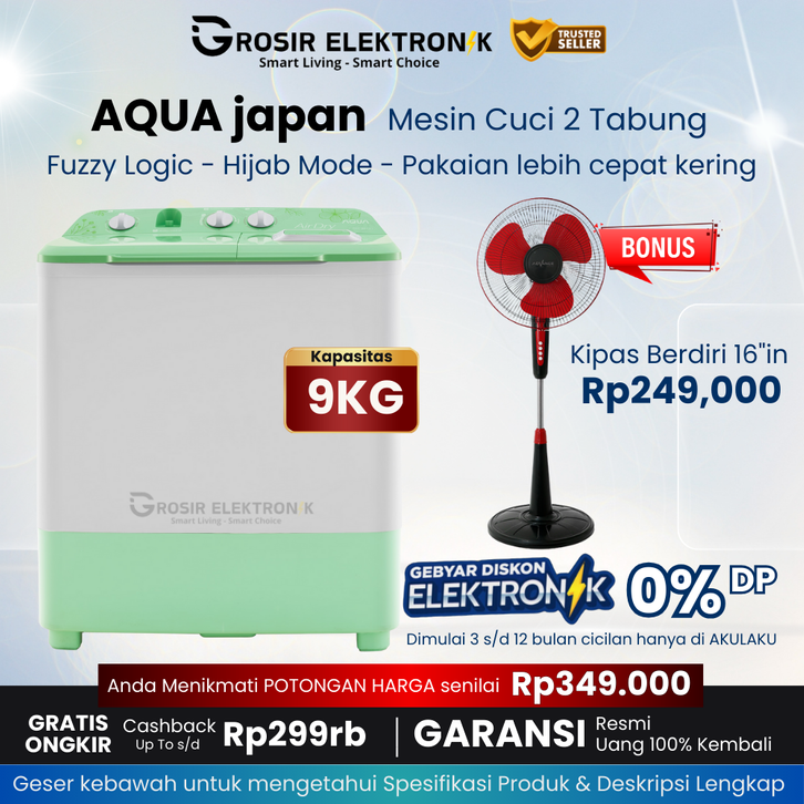 GRATIS ONGKIR - Mesin Cuci 9 KG Hijab [ AQUA JAPAN QW-61XT / 7KG - 8KG ] - mesin cuci 2 tabung 9kg - STGE - M2T