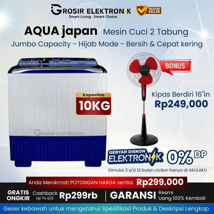 GRATIS ONGKIR - Mesin Cuci 2 Tabung 10 KG Hijab [ AQUA JAPAN QW-50XT / 7KG - 14KG ] - mesin cuci aqua 10kg - STGE - M2T