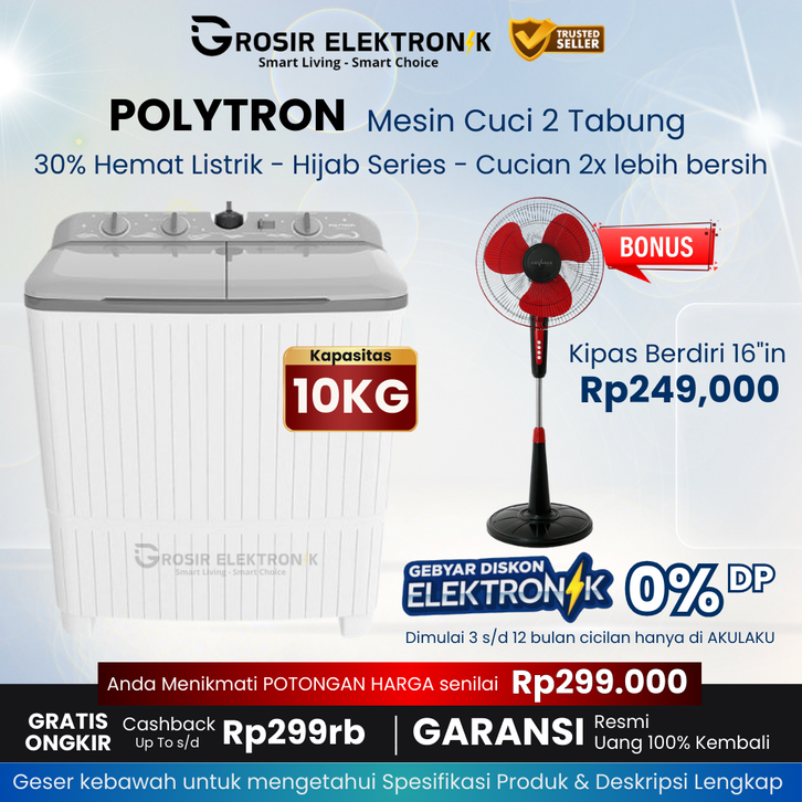 GRATIS ONGKIR POLYTRON - Mesin Cuci 2 Tabung 10KG [ PWM-76YG 7KG - 10KG ] - mesin cuci polytron 10kg - STGE - M2T