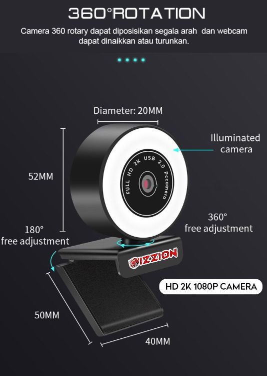 Webcam Ring Light Selfie 2K 1080P Camera Auto Focus VIZZION Matrix B12