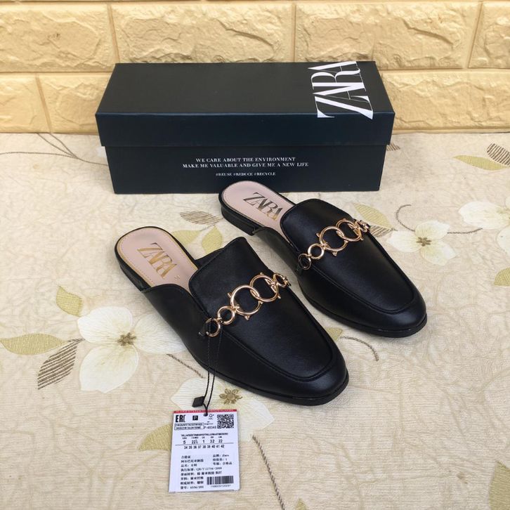 Sepatu Sandal Zara Wanita Original Import Shoes/Sepatu Wanita ZR-1758 Flat Heel/Sandal Zara Wanita Leather Mule Laofers
