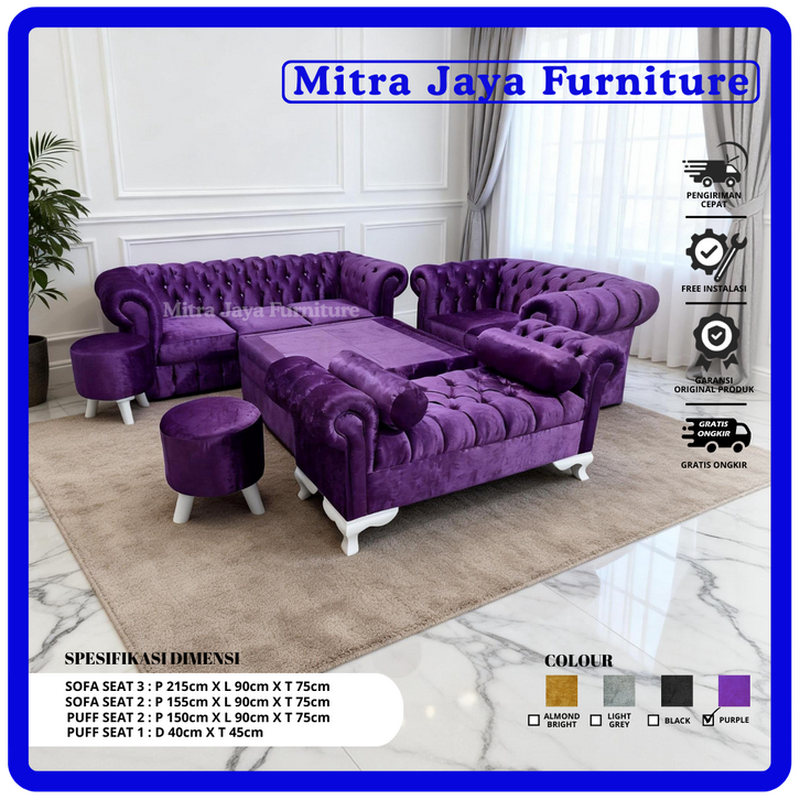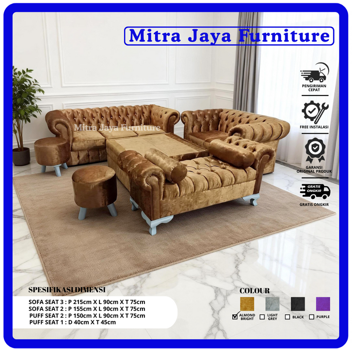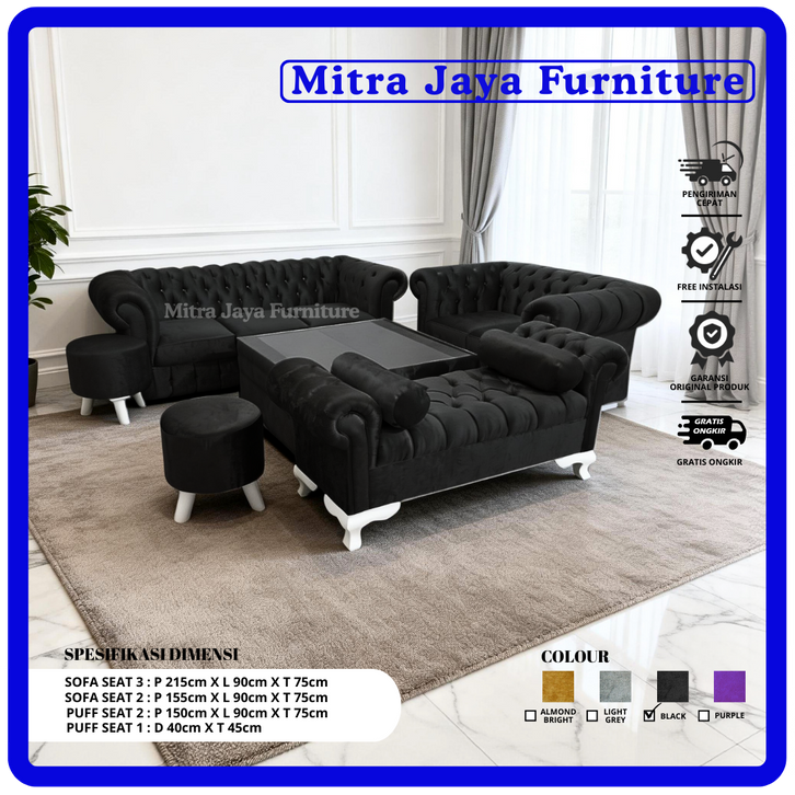 SOFA CHESTERFIELD FULL SET/SOFA RUANG KELUARGA/ SOFA TERBARU/ Mitra Jaya Furniture