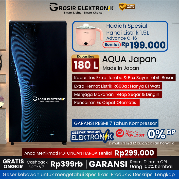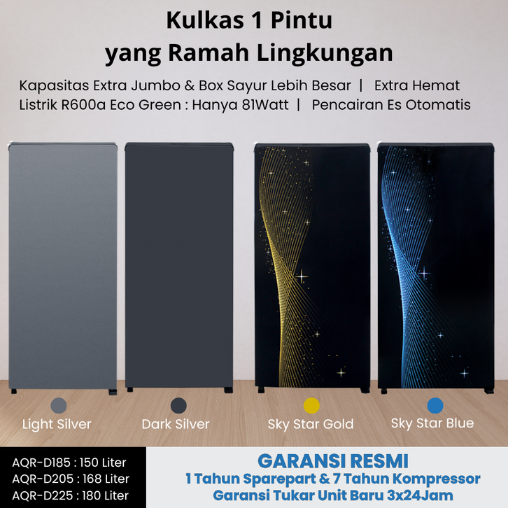 GRATIS ONGKIR - Kulkas 1 Pintu 180L Jumbo Freezer [ AQUA JAPAN AQR-D5 150L - 180L ] - kulkas 1 pintu aqua - K1P
