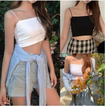 Tank Top Tali Wanita Dewasa CROP | Bahan PE Halus | Tali Polos | Size M-L-XL