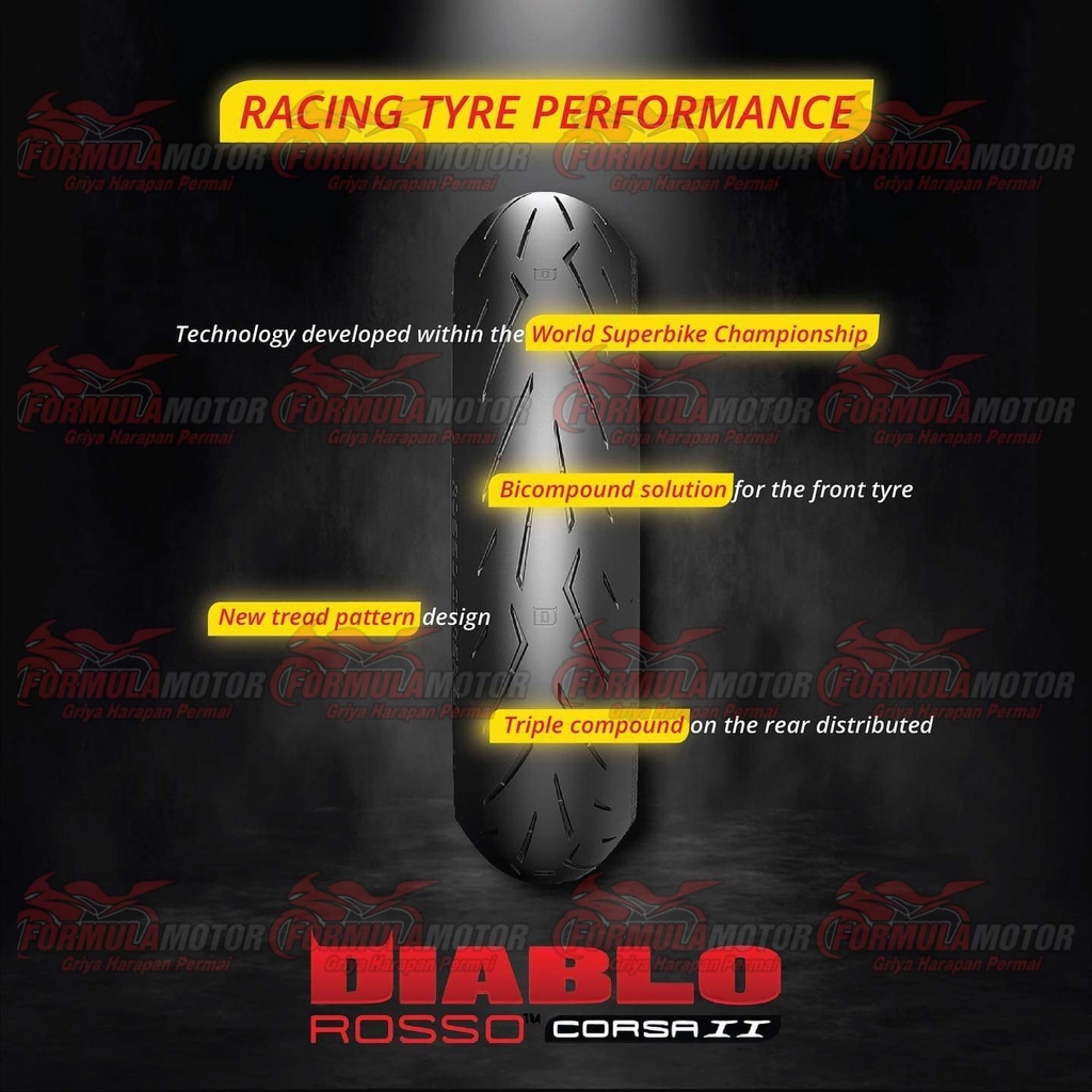 100/80-17 + 110/70-17 Ban Pirelli Diablo Rosso Corsa 2 Racing Compound - Sepasang Ban Balap Motor Ring 17