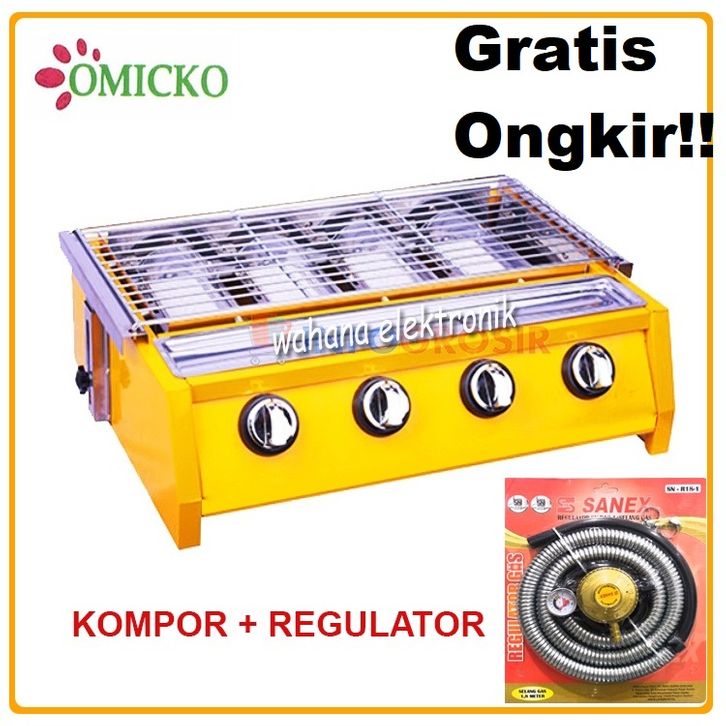 Kompor Panggang/ Panggangan sosis /Kompor Sosis Bakar Sate Bakar 4 Tungku/BBQ GRILL Paket Regulator Gas Kompor Panggang