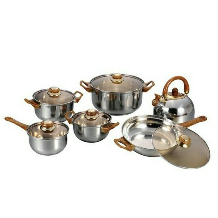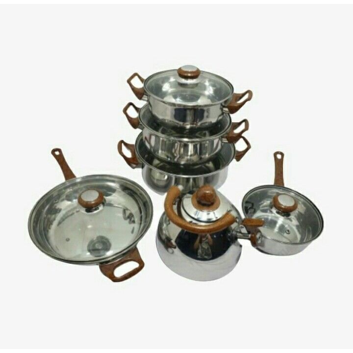 Panci /set 12 Pcs Stainless M-129 Tutup Kaca - Kitchen Ware Set / panci set/ peralatan dapur / panci / teko
