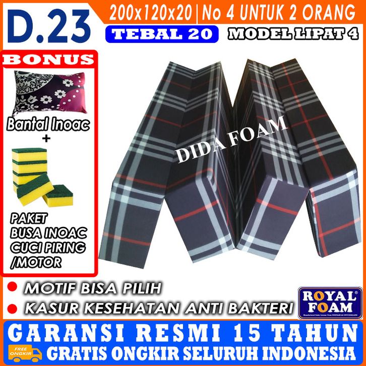 kasur lipat busa royal 200x120x20 garansi 15 tahun gratis ongkir gratis bantal inoac no 4