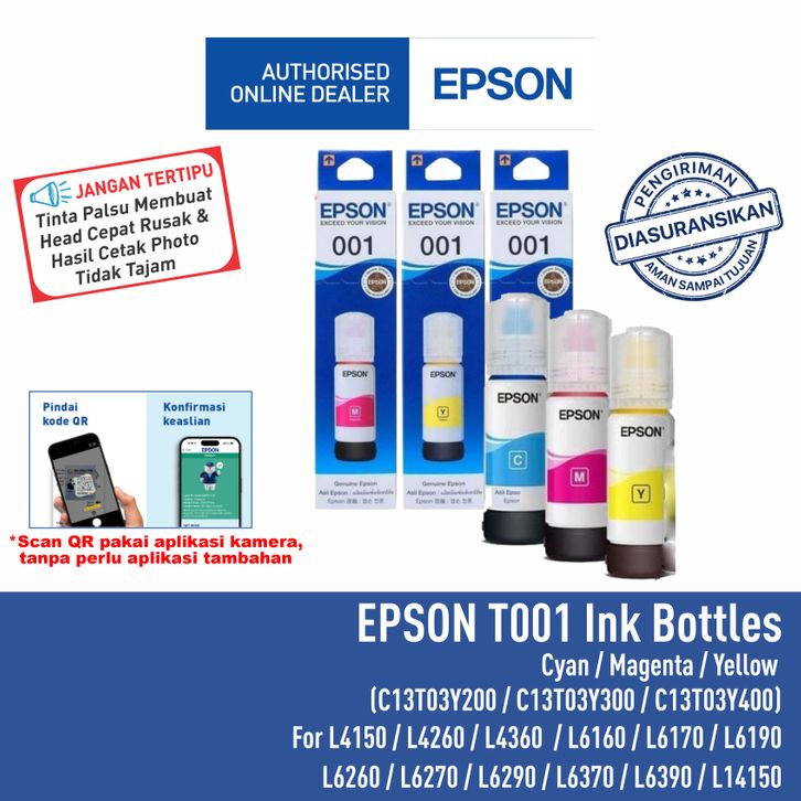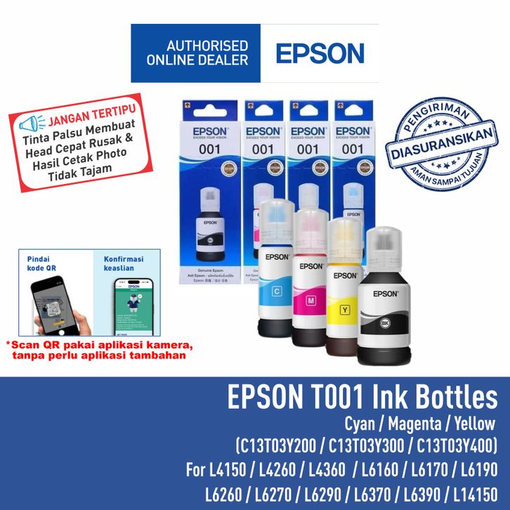 Tinta Epson 001 T001 T-001 T 001 COLOR T03Y - For L4150 L6160 L6170 L6190 Original Asli