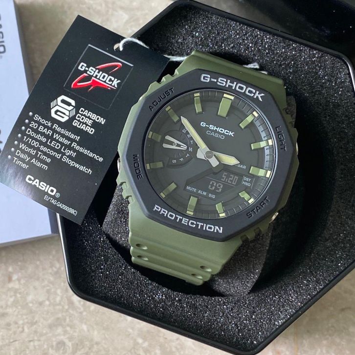 JAM TANGAN PRIA CASIO G-SHOCK GA-2100 Green Black RUBBER ORIGINAL - FREE ONGKIR