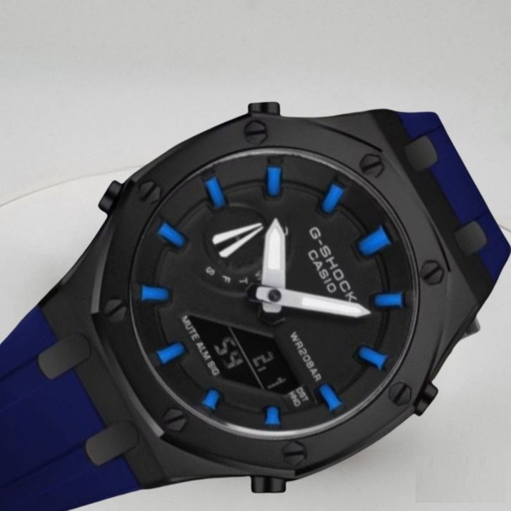 JAM TANGAN PRIA CASIO G-SHOCK GM-2100 BLACK BLUE RUBBER + BOX & FREE ONGKIR