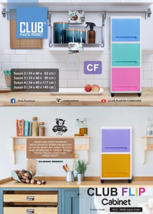 BEBAS ONGKIR!!! Lemari Plastik Susun 3 Club/ Laci Plastik Susun 3 flip