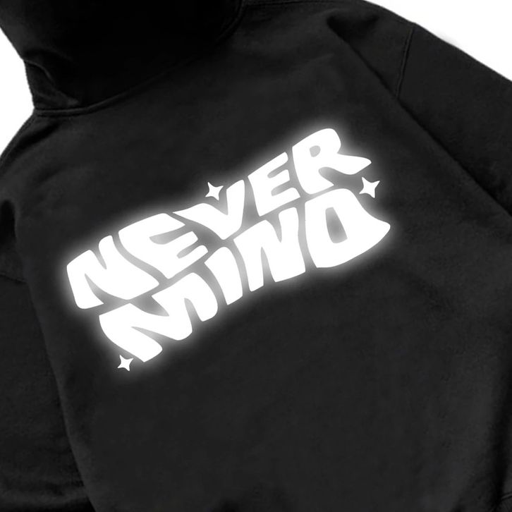 [Mall] JICO - Sweater Hoodie Boxy Oversize Unisex NEVER MIND Menyala Warna HItam