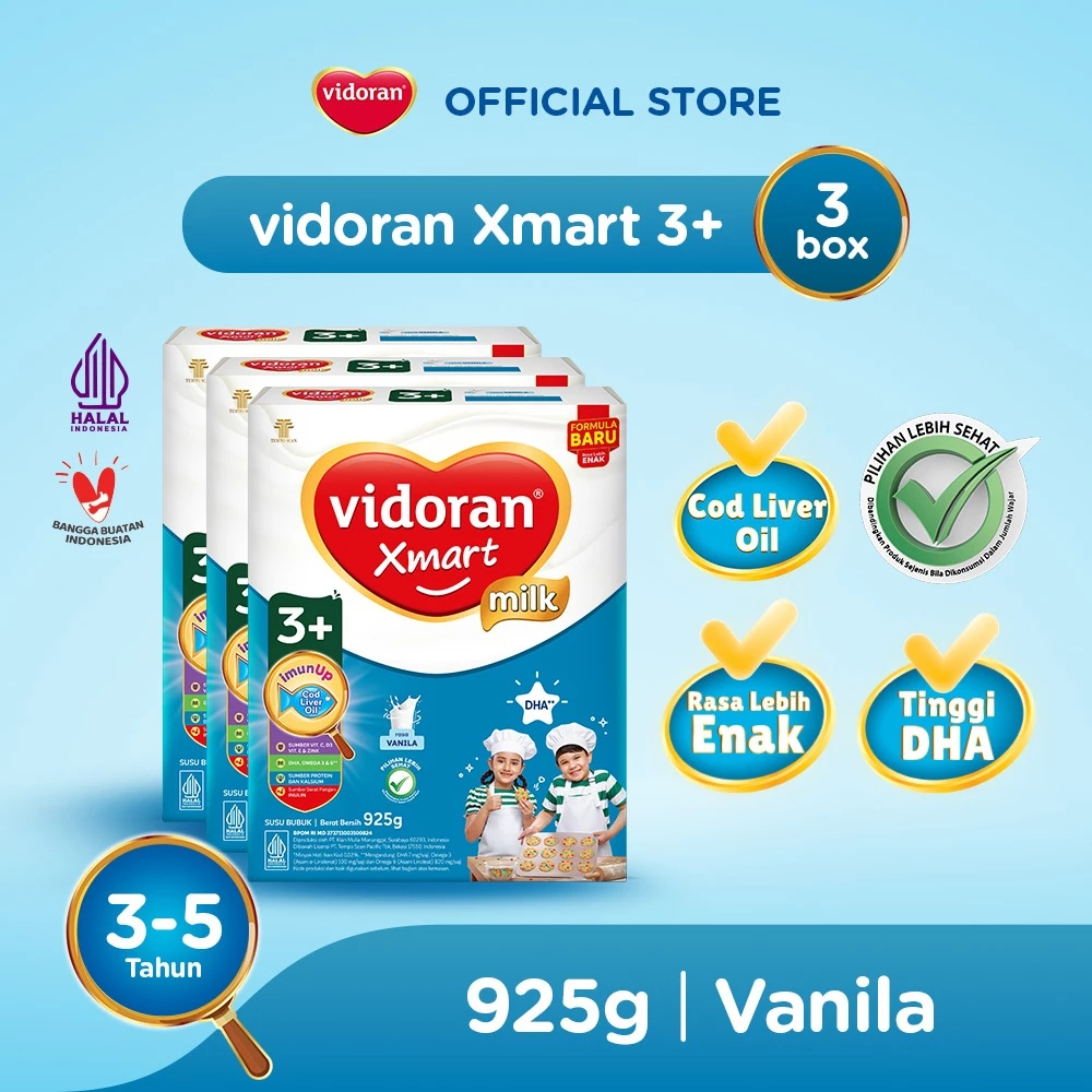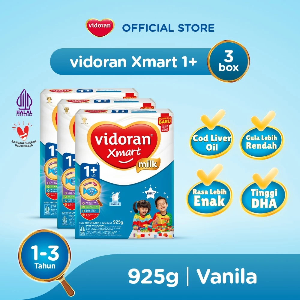 X 3 BOX VIDORAN XMART 1+ Dan 3+ Plus IMUN UP Madu Vanilla 925gr X 3PCS