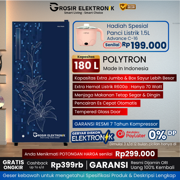 GRATIS ONGKIR - Kulkas 1 Pintu 180L Hemat Energy [ POLYTRON PRAB-18 180L - 210L ] - Kulkas Polytron 2 pintu - K1P