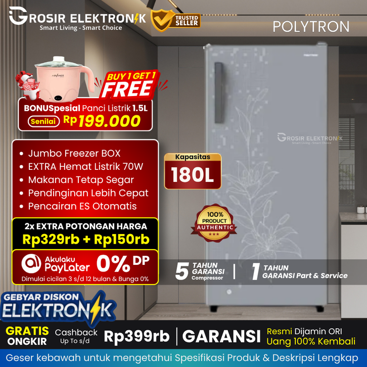 Kulkas 1 Pintu 180L Hemat Listrik Jumbo Freezer [ POLYTRON PRA18 ] - Kulkas Polytron 1 pintu - K1P - STGE