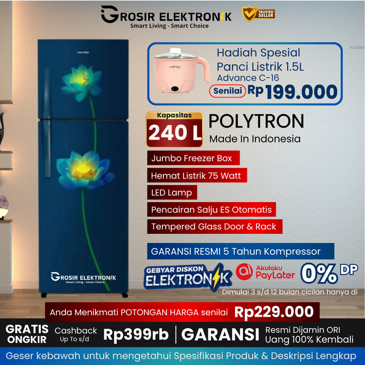 GRATIS ONGKIR POLYTRON - Kulkas 2 Pintu 240L Jumbo Garansi Resmi [ PRB-7LB 150L - 240L ] - kulkas polytron - K2P - STGE