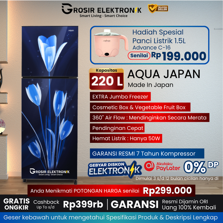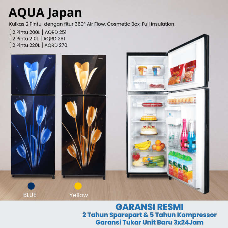 GRATIS ONGKIR - Kulkas 2 Pintu 220L Hemat Listrik - [ AQUA JAPAN AQR-D10LKB 200L-220L ] - kulkas aqua 2 pintu - K2P