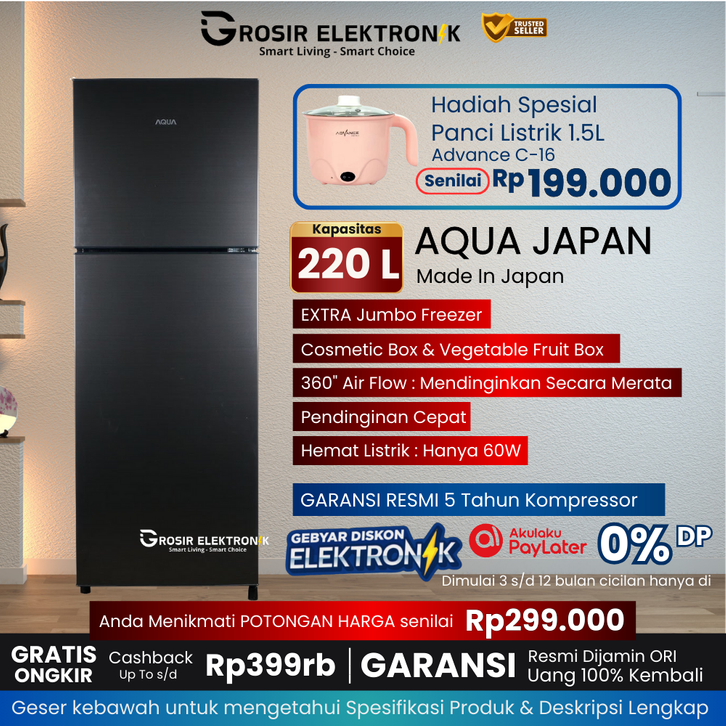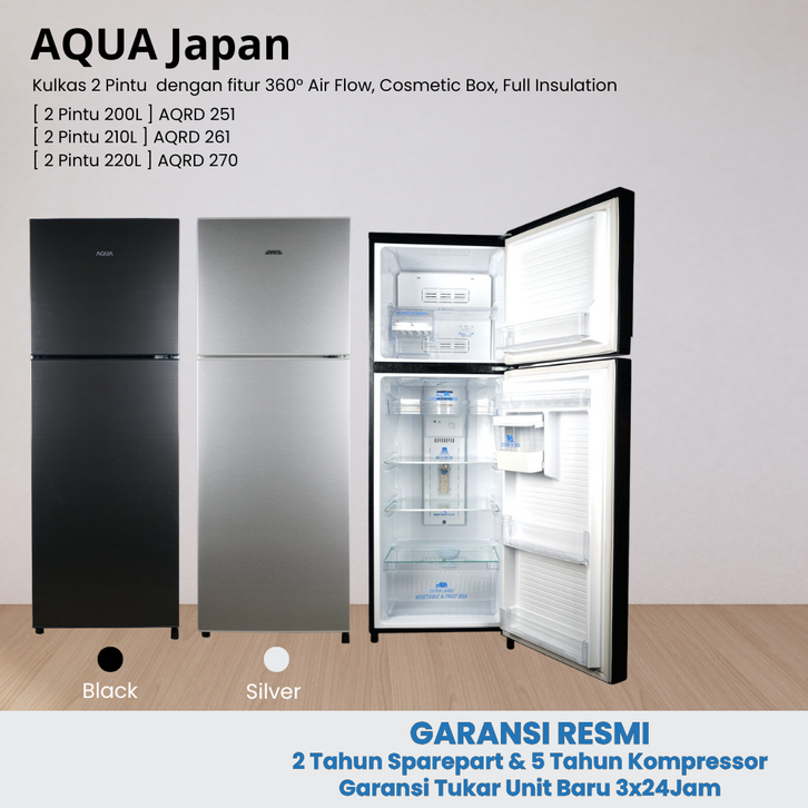 GRATIS ONGKIR - Kulkas 2 Pintu 220L Hemat Listrik - [ AQUA JAPAN AQR-D10 200L-220L ] - kulkas aqua 2 pintu - K2P - STGE
