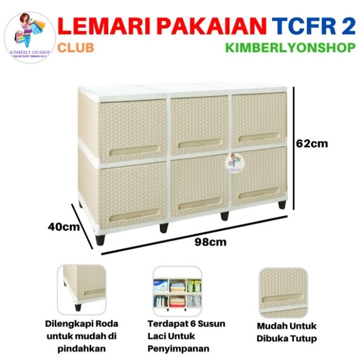 Lemari Pakaian Laci Kabinet Plastik Tripel Flip Susun 2 TCFR 2 Club