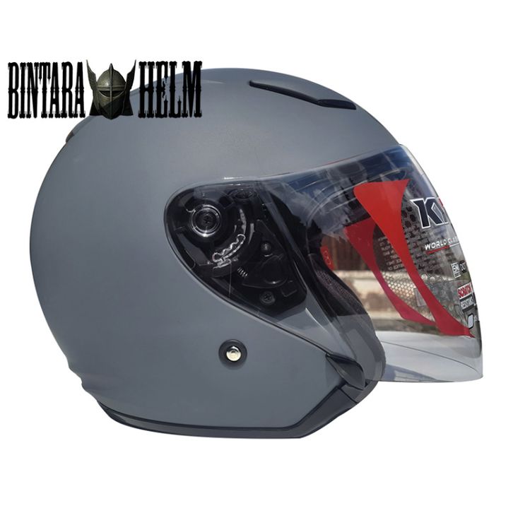 HELM KYT DJ MAXI SOLID MATT GORILA GREY ORIGINAL KYT DJ MAXI HALF FACE 2 VISOR TERMURAH