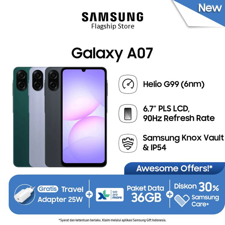 Samsung Galaxy A07 [4GB+64GB] [4GB+128GB] [6GB+128GB] - Garansi Resmi 1 Tahun.