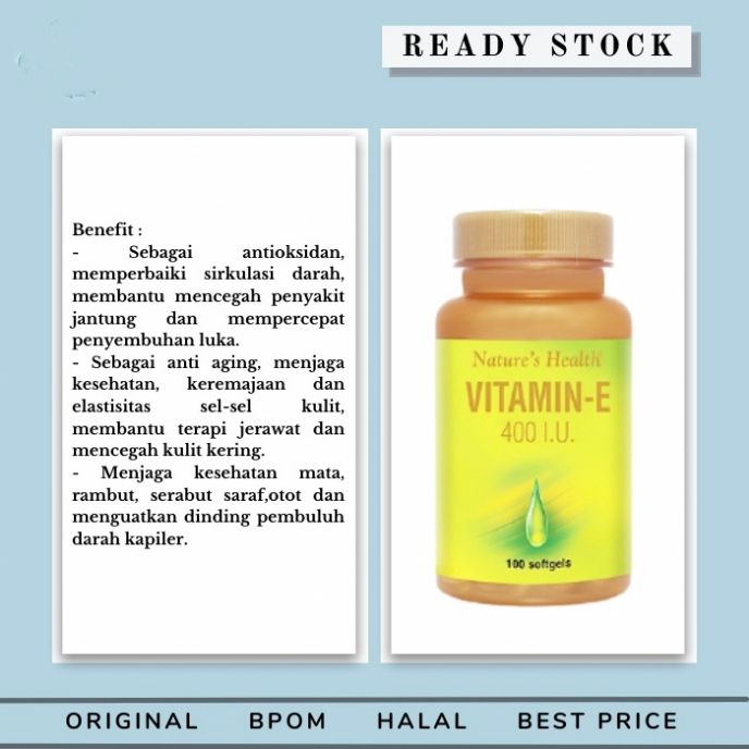 NATURE'S HEALTH Vitamin E 400 IU Vit E Sumber Antioxidant 100tablet