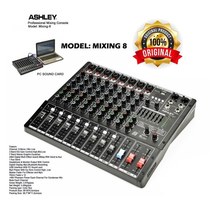 Mixer Ashley Mixing 8 channel usb bluetooth soundcard usb rec ORIGINAL Free ONGKIR
