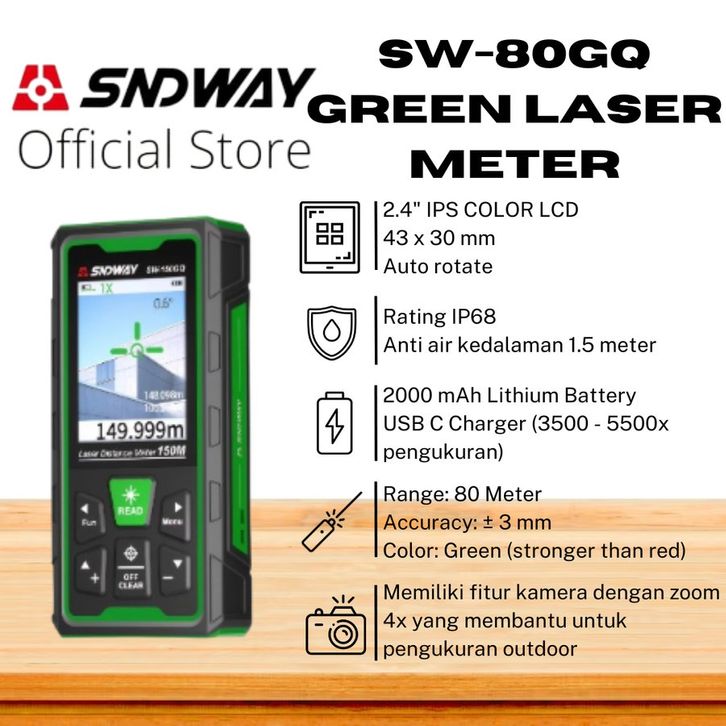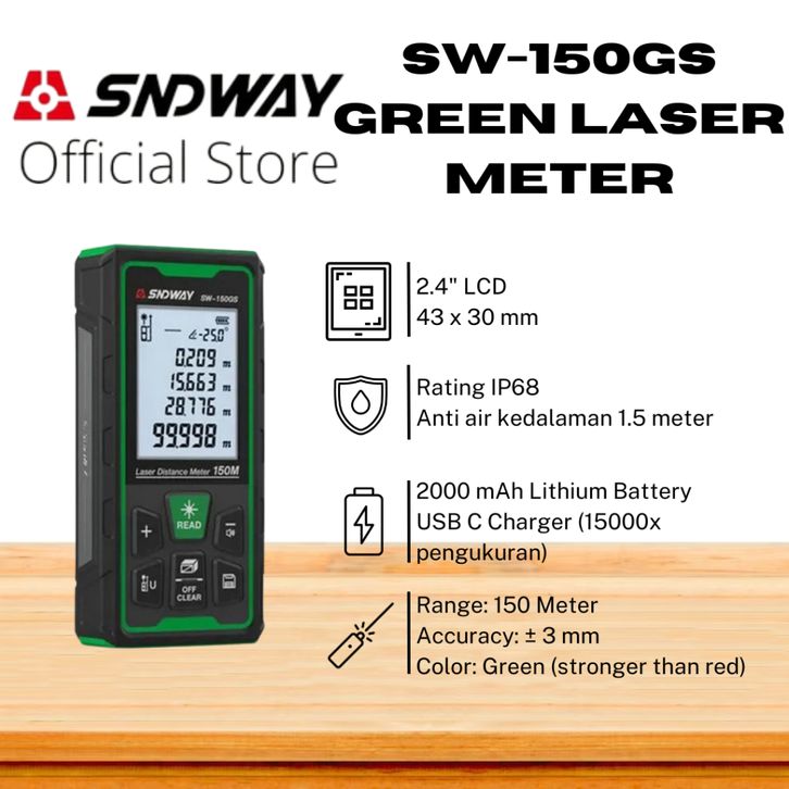 METERAN LASER DIGITAL SNDWAY GREEN LASER HIJAU OUTDOOR 50–150 METER SW 50G 70G 80GQ 100G 100GTD 150GS 150GQ