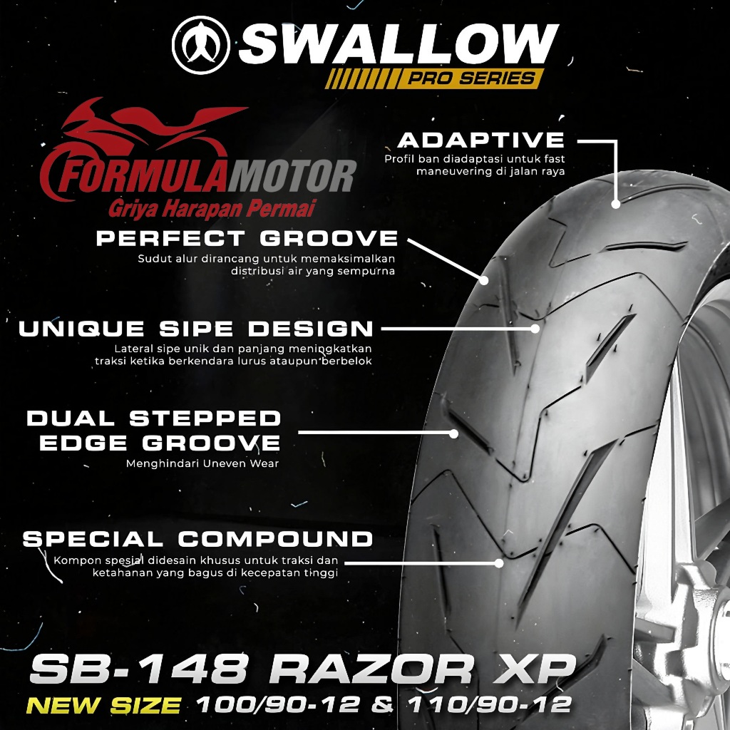 Swallow Razor XP Ring 12 Tubeless All Size (Soft Compound) Ban Motor Matic Tubles SB148 SB-148 (100/90-12, 110/90-12)